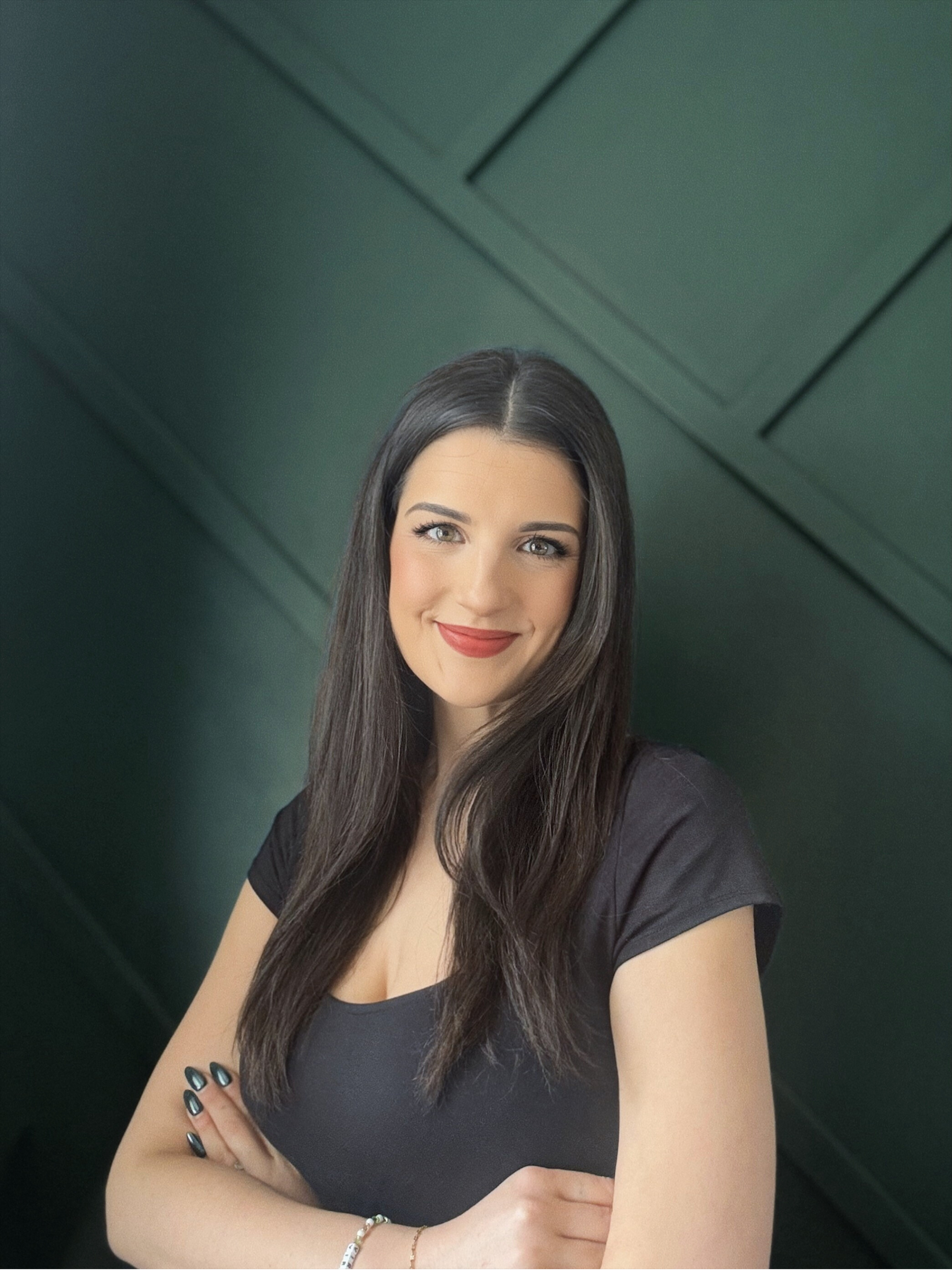 Angela Remondi, Registered Psychotherapist and Art Therapist, smiling warmly in a cozy office setting. Kind, professional, compassionate therapy and counselling for children, teens, adults, and couples.